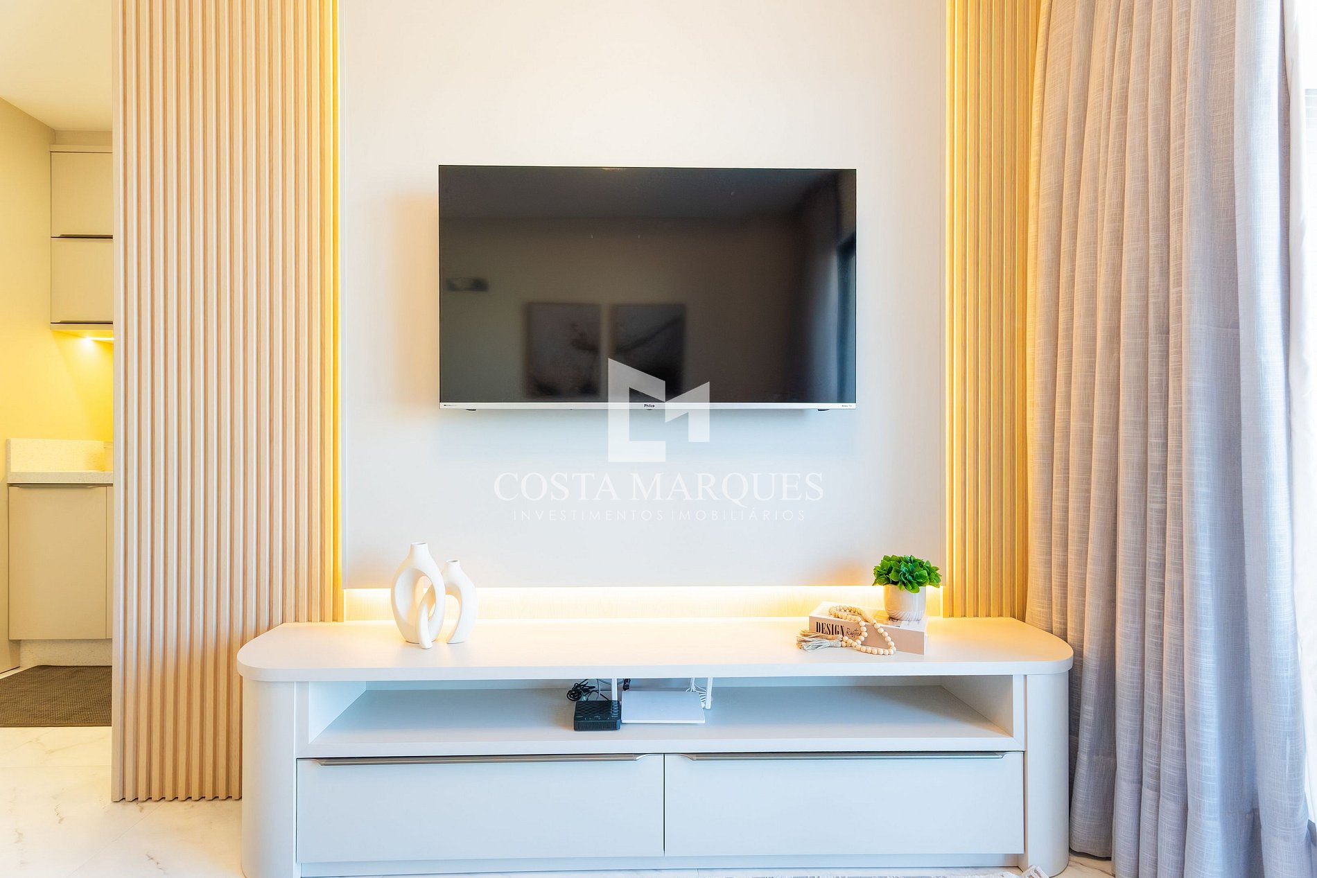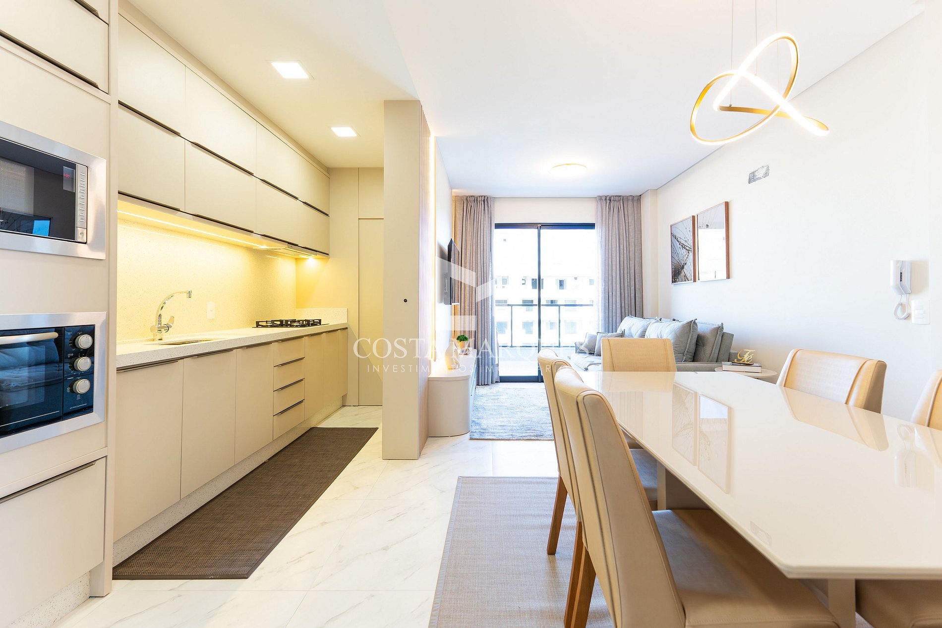Sala de estar e jantar integradas.