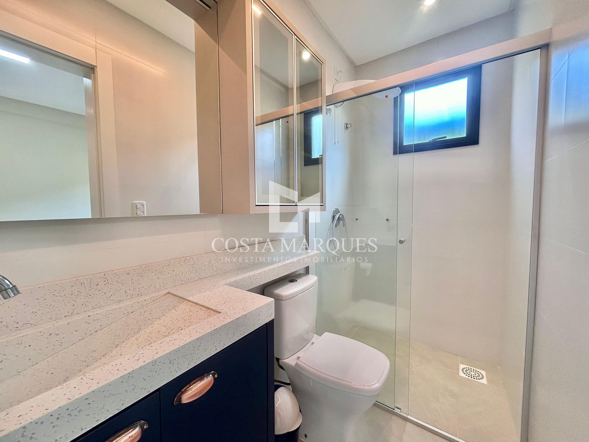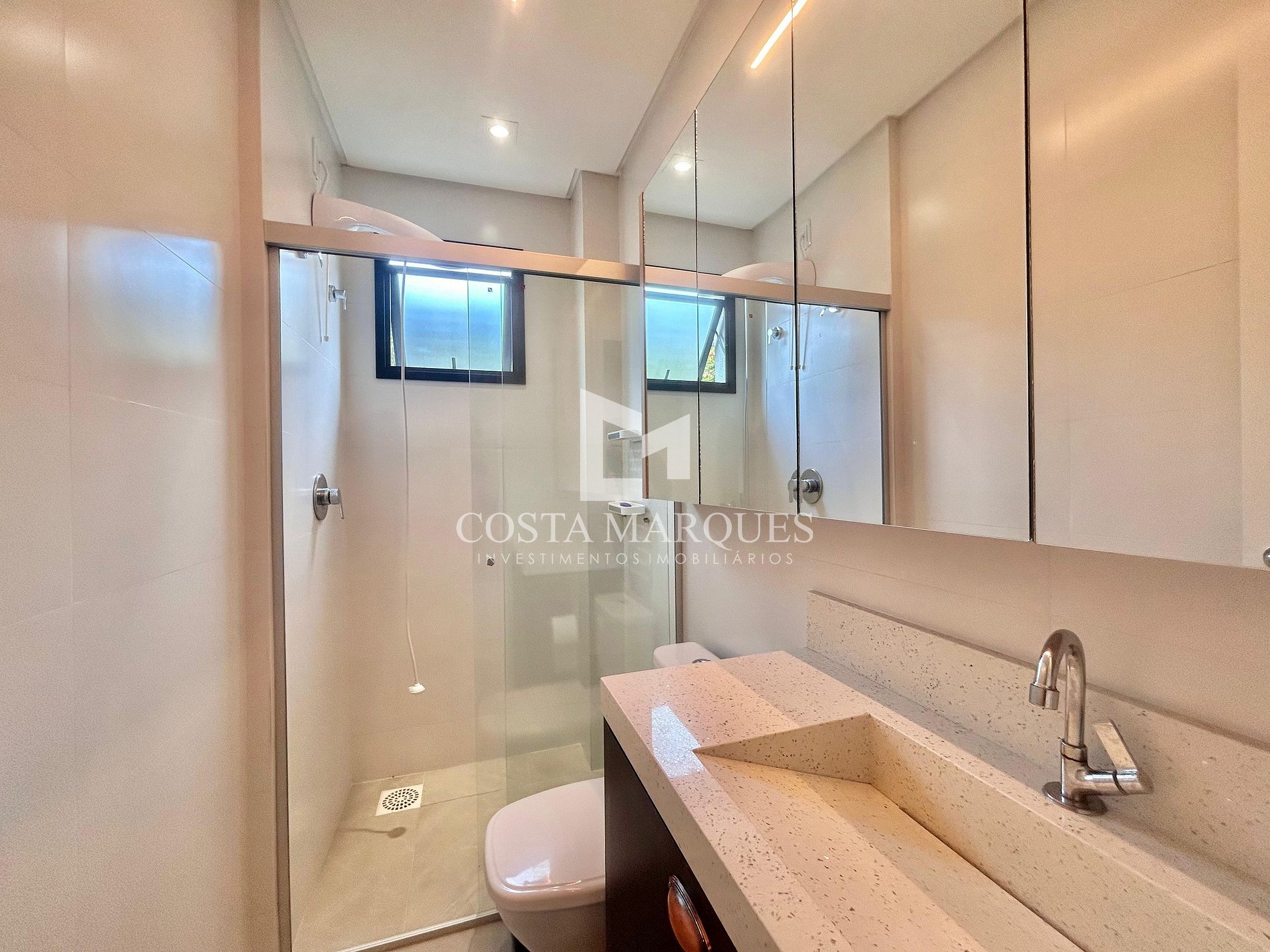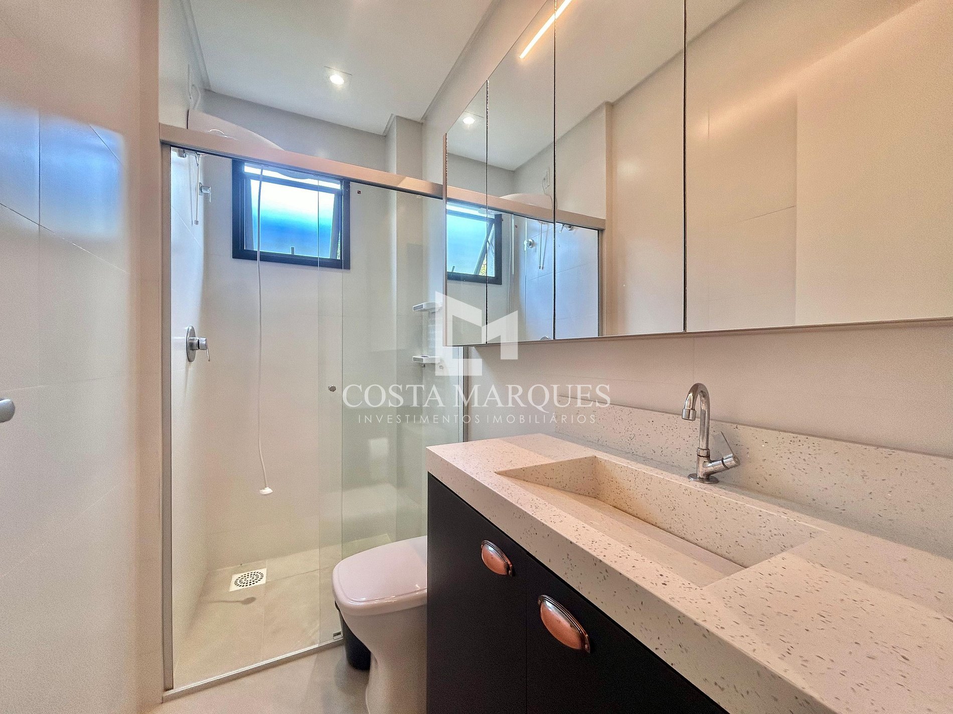 Banheiros modernos: Cada suíte conta com seu banheiro privativo, além de chuveiros com água quente e acabamento de alta qualidade.